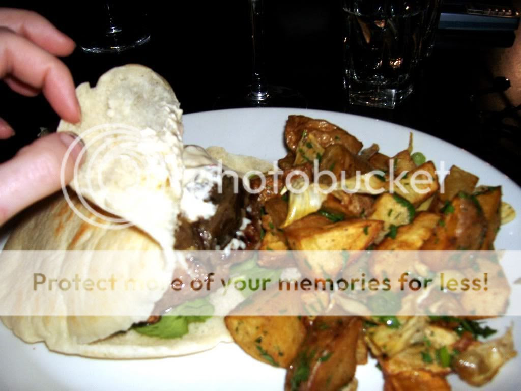 Megan ordered the beef kebab which was very nice. I went to try one of the potatoes and with the effects of the darkness and alcohol together i got some roasted garlic instead... Now i don't know if you're ever meant to eat the roasted garlic, cause i never think it tastes good. I got a potato on my next go and they were perfectly crispy and seasoned. The meat was good too, but if you ask me it tasted like your normal beef to me.